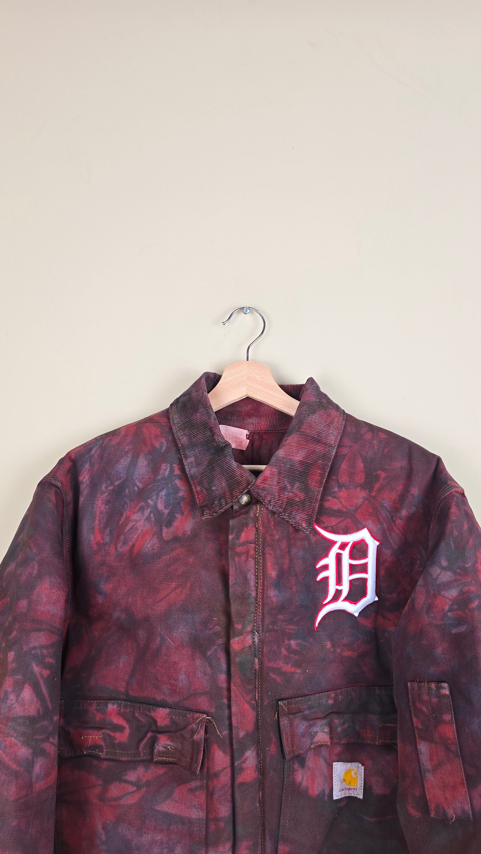 Featuring early 90s crop style Carhartt Jacket in camo red.