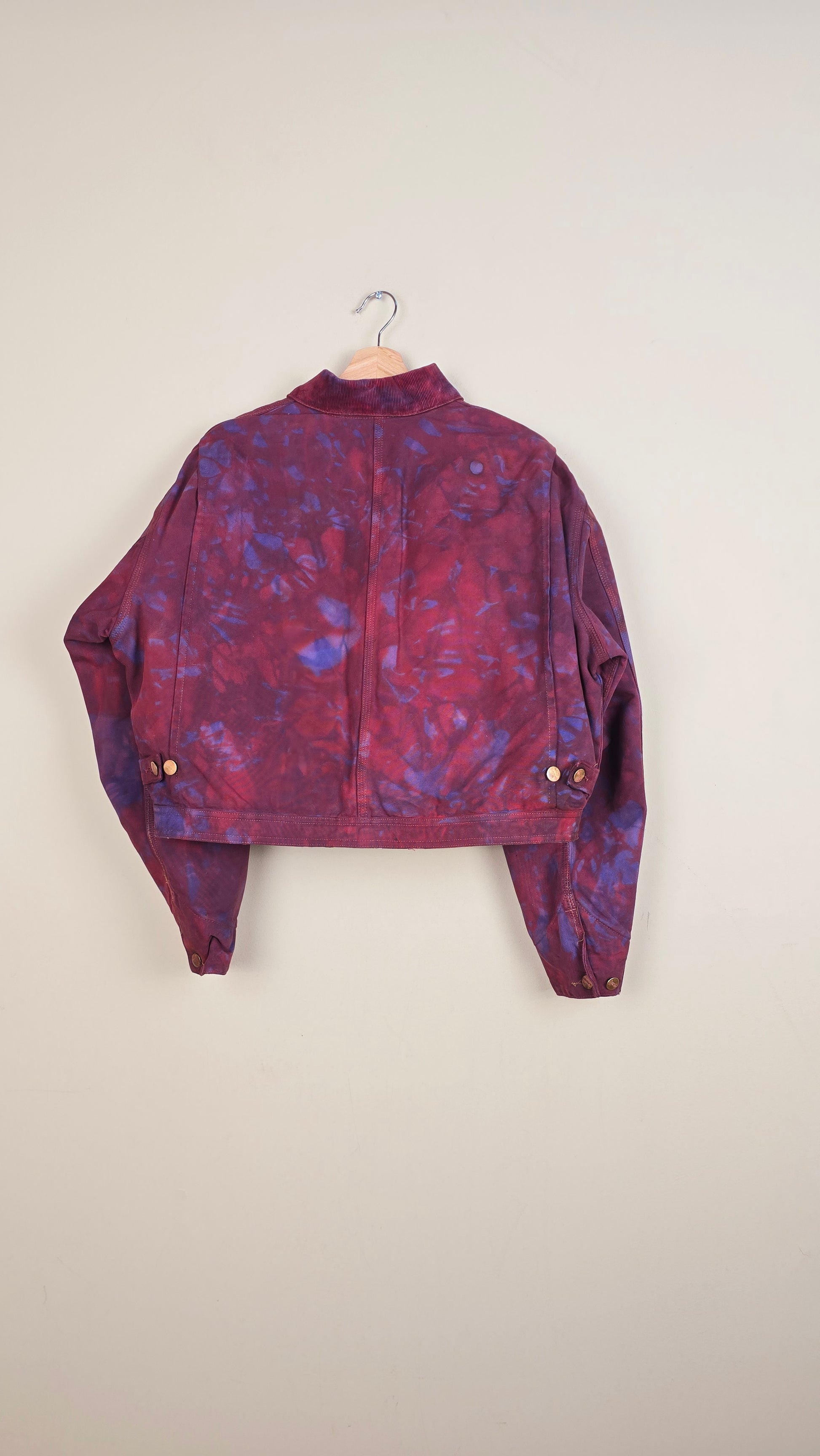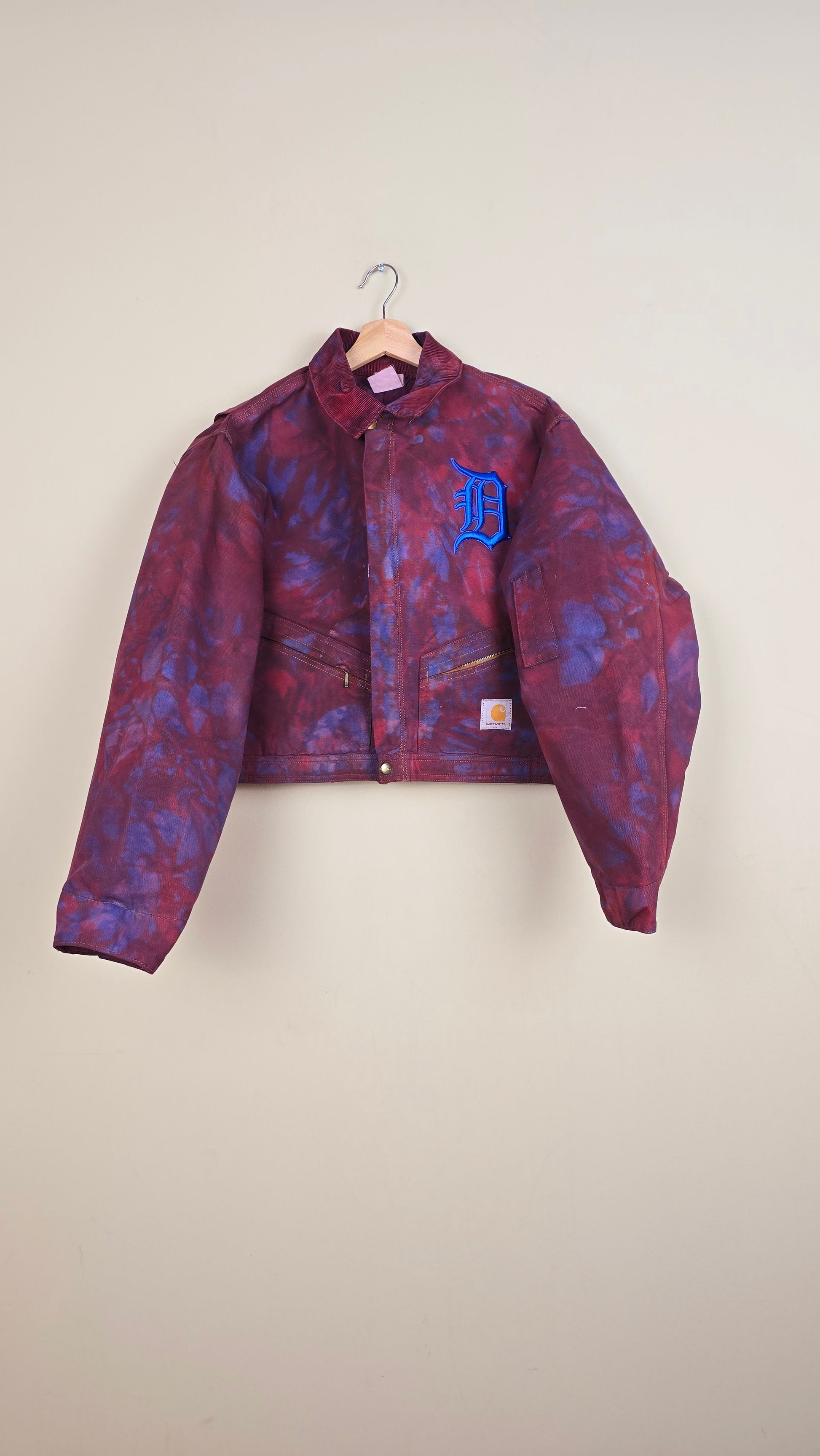 Featuring early 90s crop style Carhartt Jacket in camo red with blue undertones.