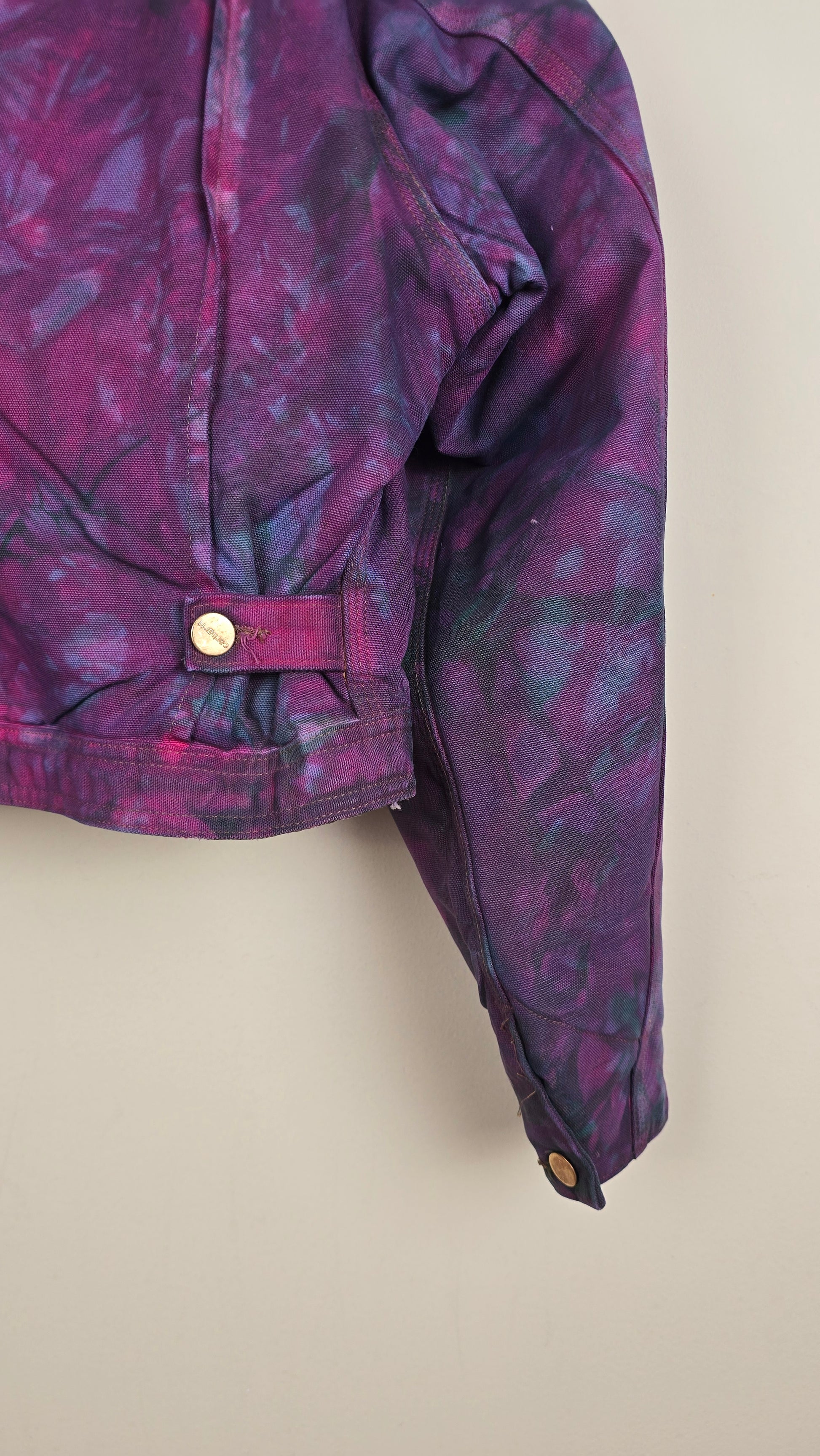 Featuring early 90s crop style Carhartt Jacket in camo with green and purple accents
