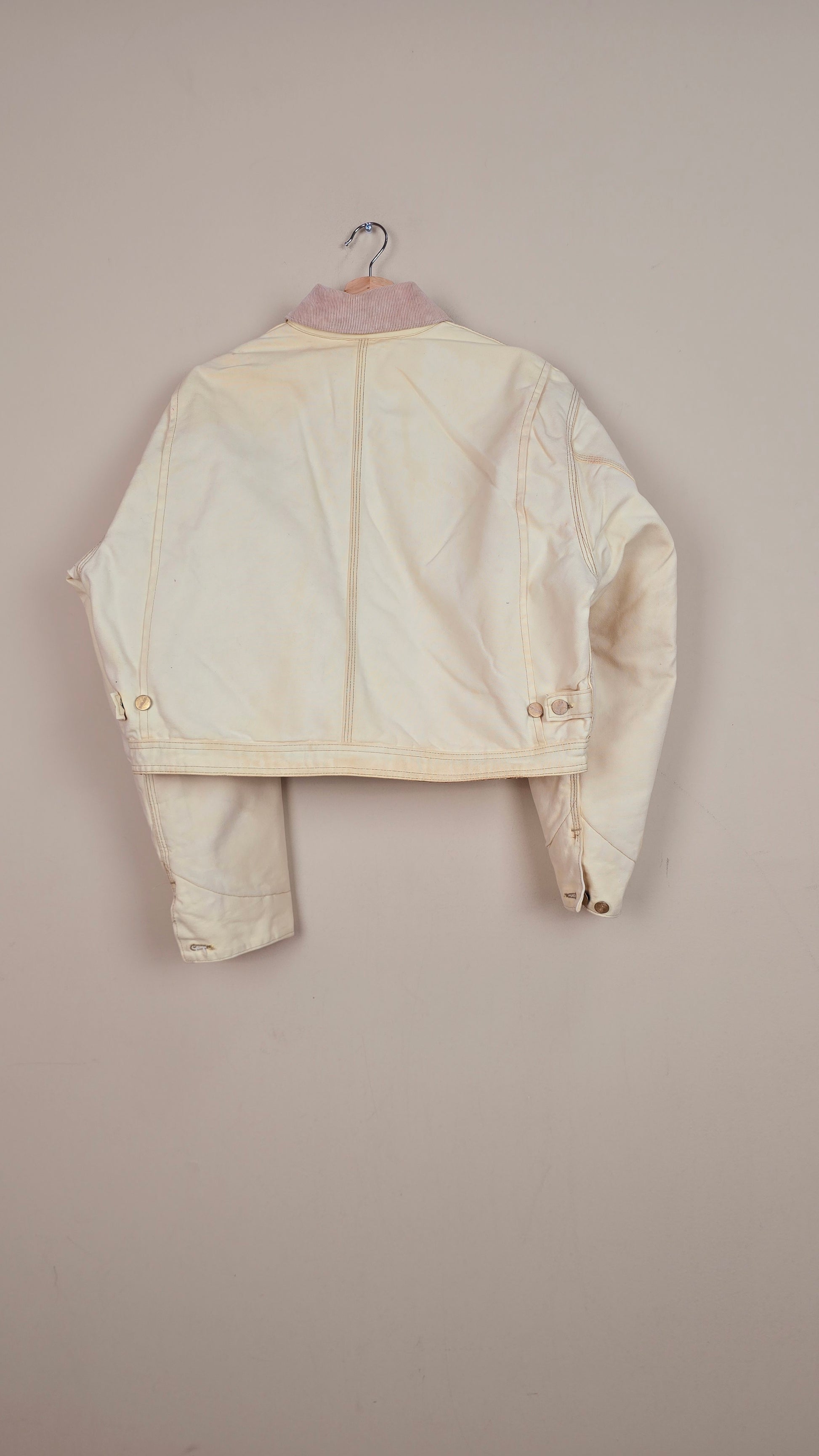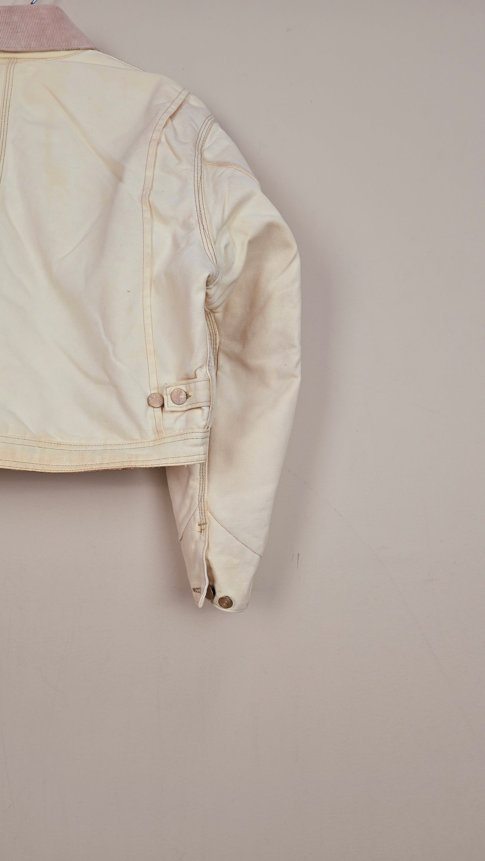 Featuring early 90s crop style Carhartt Jacket in beige with contrasting corduroy collar.