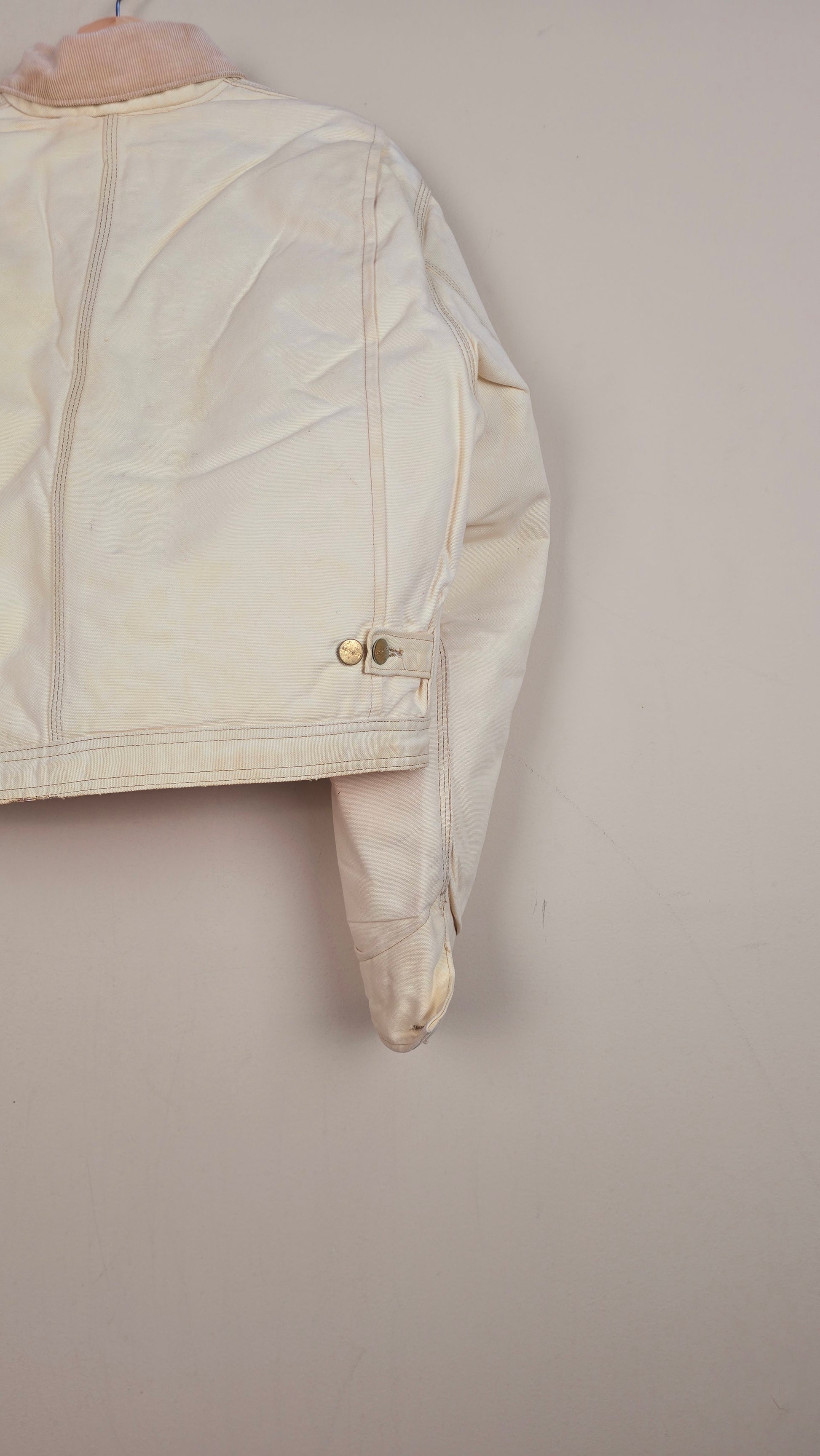 Featuring early 90s crop style Carhartt Jacket in beige with contrast corduroy collar.