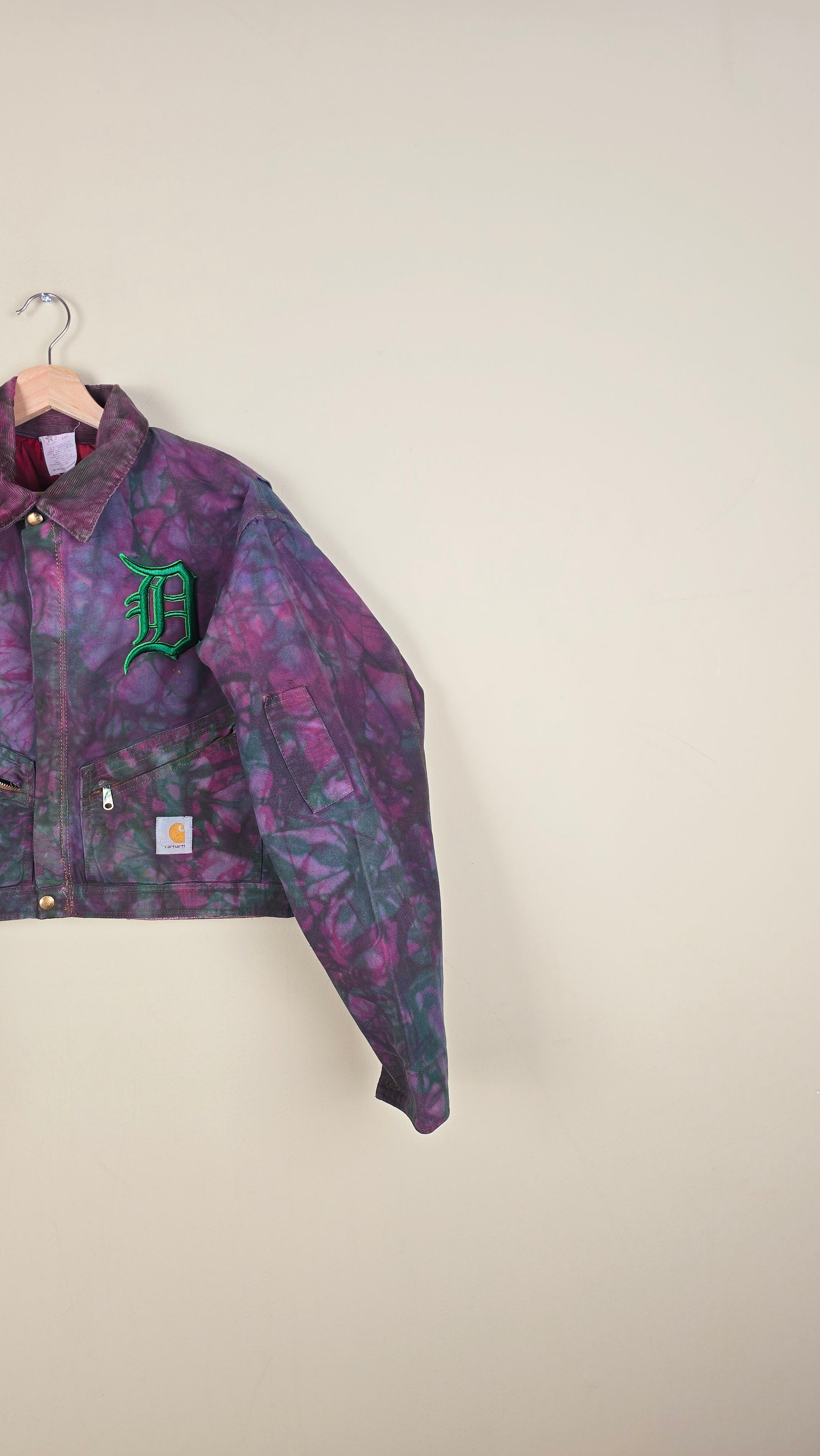 Featuring early 90s crop style Carhartt Jacket in camo with green and purple accents.