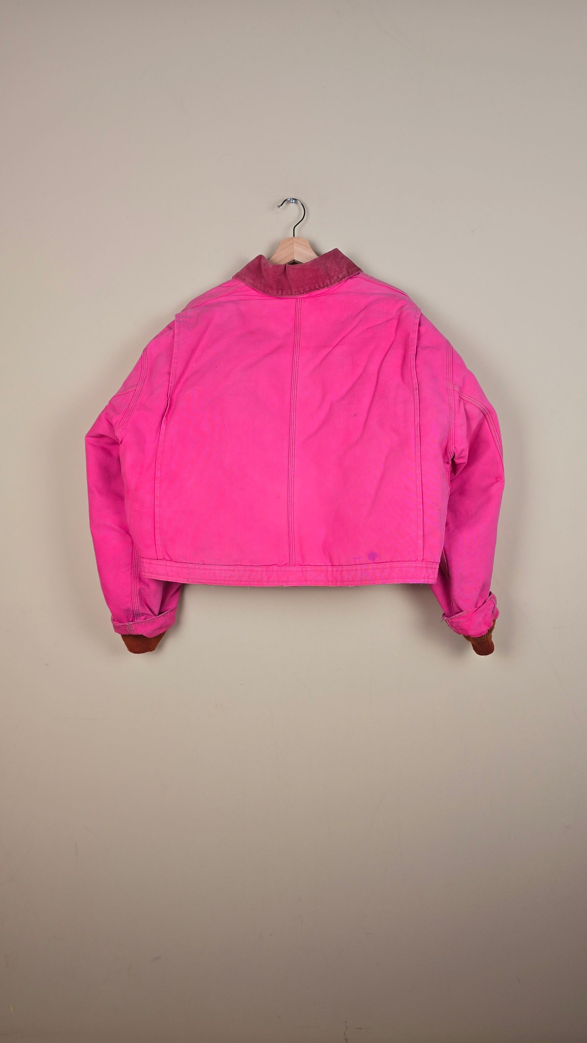 Featuring early 90s crop style Carhartt Jacket in pink with added insulation and contrasting wrist cuffs.
